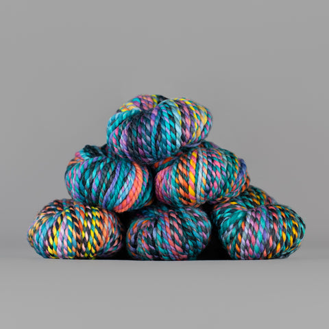 Kettle dyed for you on our American grown wool in some of our favorite colorways (a pretty nice mix of old standards and flashy new bangers, if we do say so ourselves) and spun on our custom Italian mills, this two-ply bulky yarn is gonna have you clearing your queue for some instant gratification knitting! And soft? Is it ever!