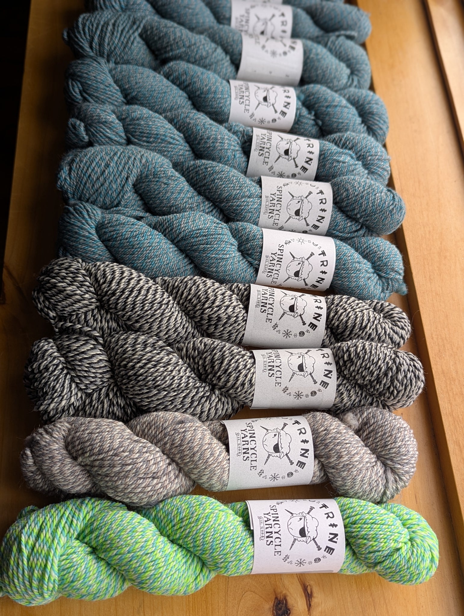 Each yarn bundle has enough yarn to knit the size 4. If you are in-between sizes, Caitlyn is a loose knitter so just go up a needle size if you think the size you want to make might be a tad small. This yarn also blends itself to a fade if you ask me so you could fade into another color. We do have a few extra skeins in the main colors if you do need more yarn. I have gotten really creative lately making yarns work. I don't know if I'm just less of a perfectionist now, or if it makes me feel cool having a totally custom to me knit.